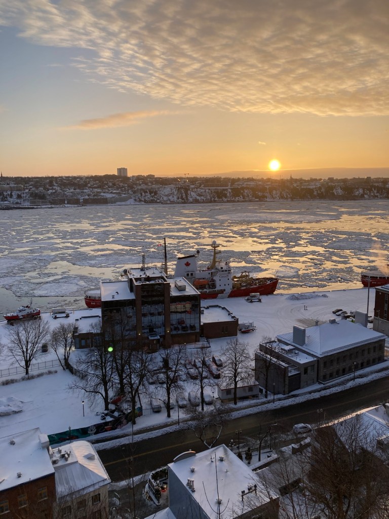 Anyway, I was in Quebec over Christmas this past December. I started most mornings around dawn walking up to the Terrasse Dufferin overlooking the St. Lawrence River for sunrise before warming up in a coffee shop (mostly Café La Maison Smith).