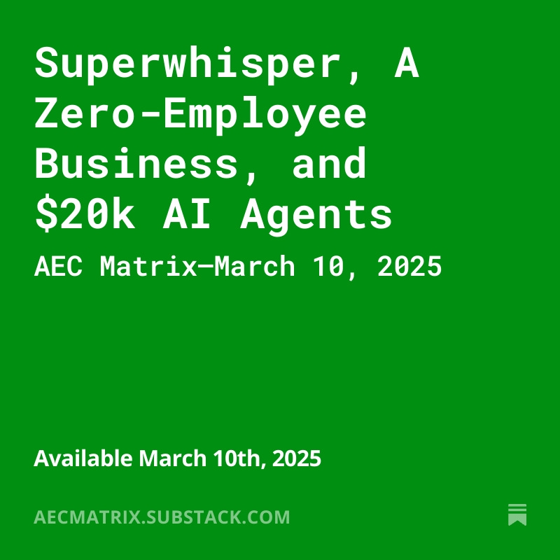 AEC Matrix is a short weekly newsletter that gets published each Monday morning. The goal is to give you a few quick hits to inform the week ahead—tools I’m using, interesting news and stories I’m following, articles, videos, books, and other AI and tech tips.
